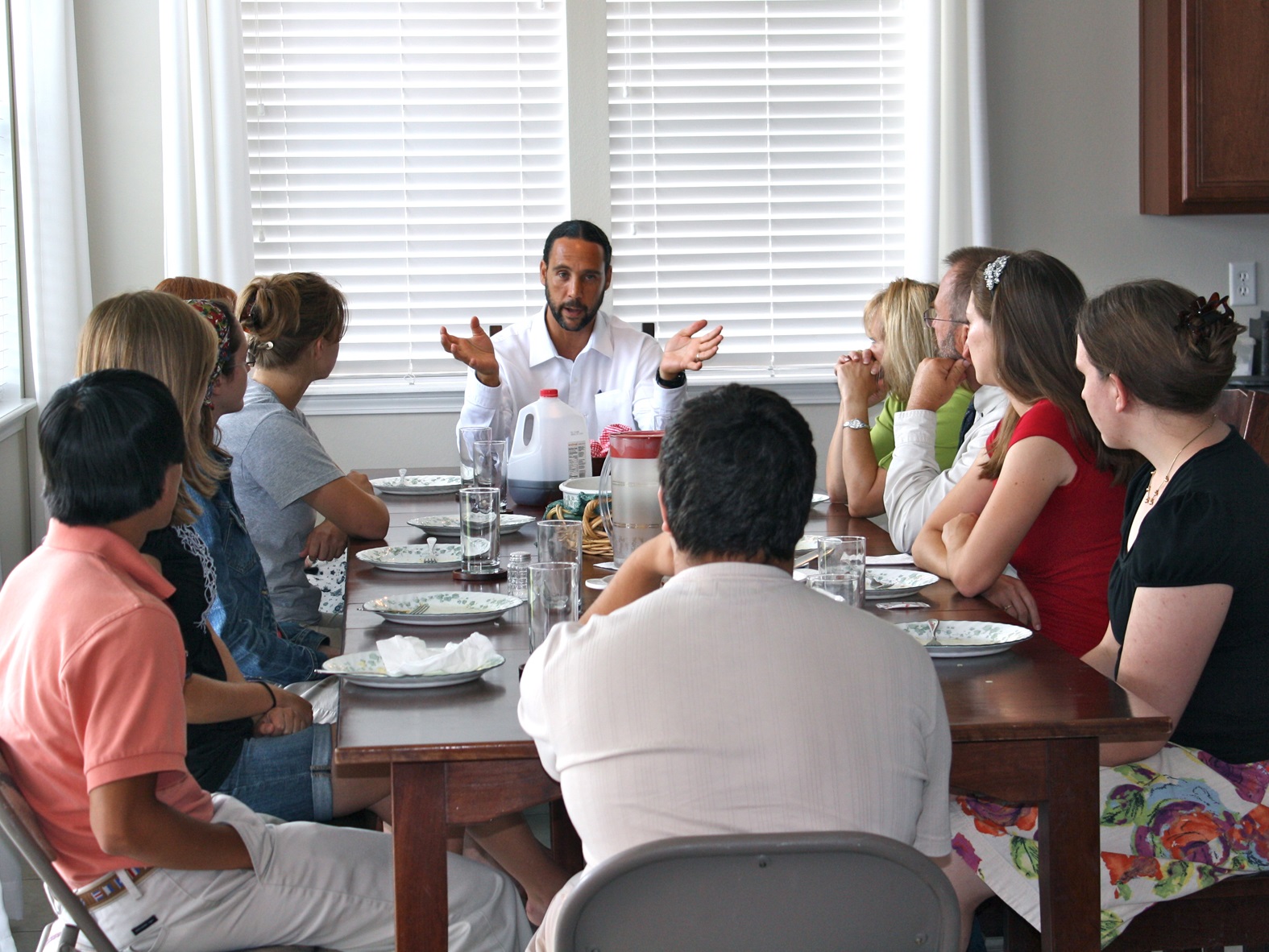 Picture: Pastor Eric Watkins teaching after a meal at the Watkins’ home in 2012.