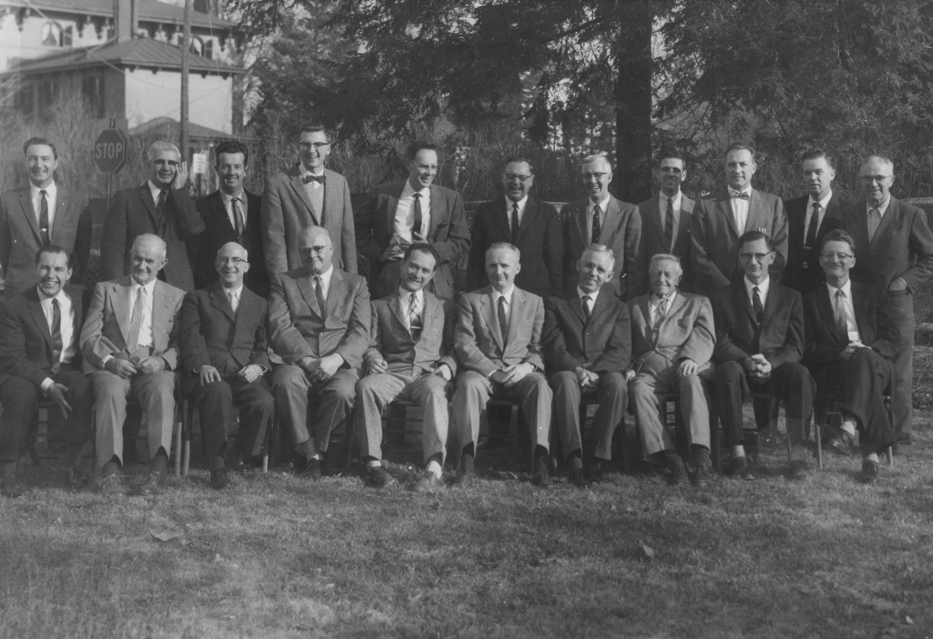 Picture: The Presbytery of New Jersey in 1960, first row left to right, R. Commeret, R. Graf, H. Bordeaux, E. DeVelde, M. Kline, R. Barker, J. Meeter, J. Pederson, L. Dunn, J. Davies; second row left to right, G. Hoogerhyde, W. L. Benson, J. Denton, T. Champness, E. Clowney, C. Busch, R. Clough, L. Chanoux, H. Keenan, A. B. Spooner, and S.G. Parker.