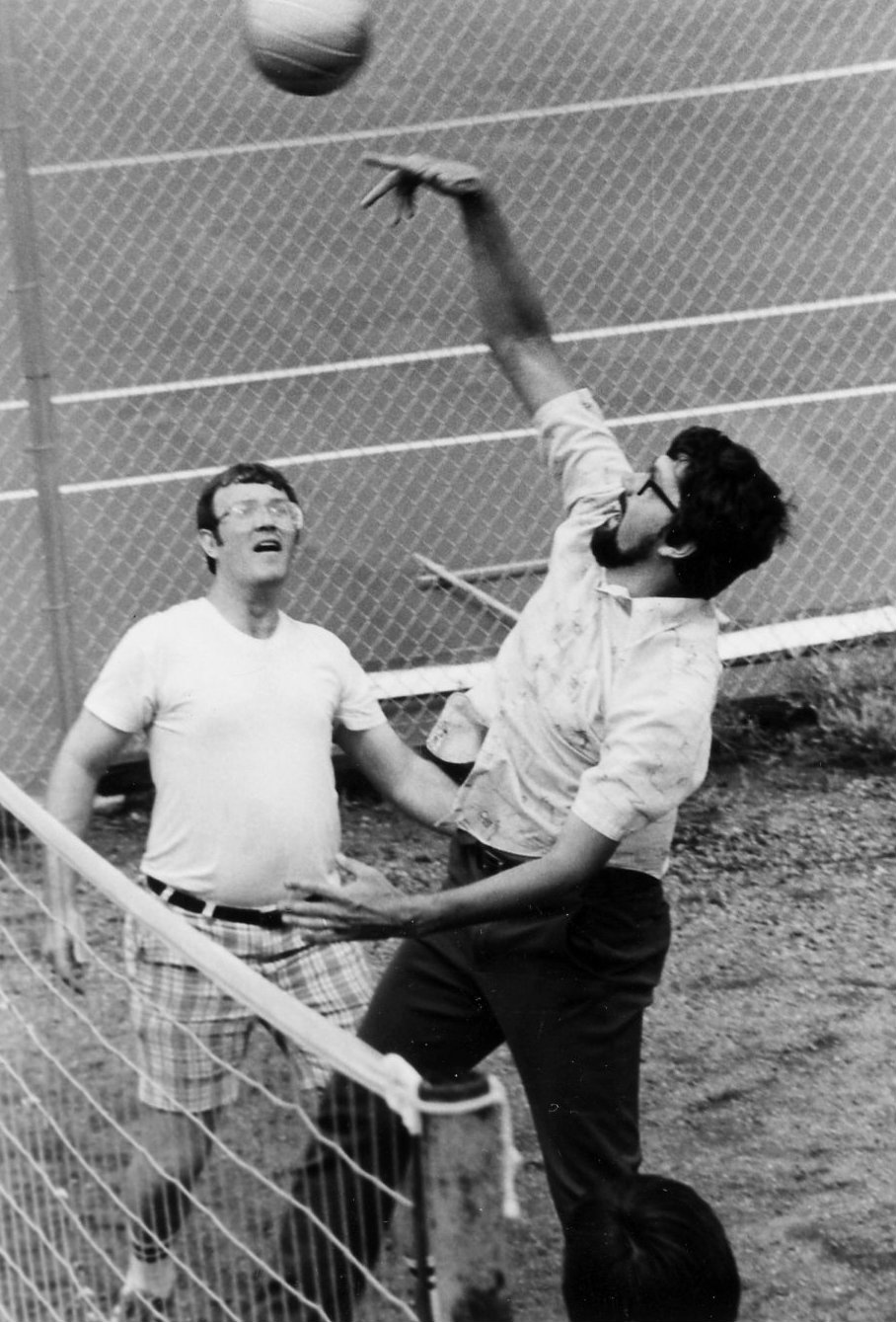 Picture: Glenn Jerrell (leaping), Winner pastor from 1973-1976, and Rick Shaw playing vollyball at the Presbytery of the Dakotas camp.